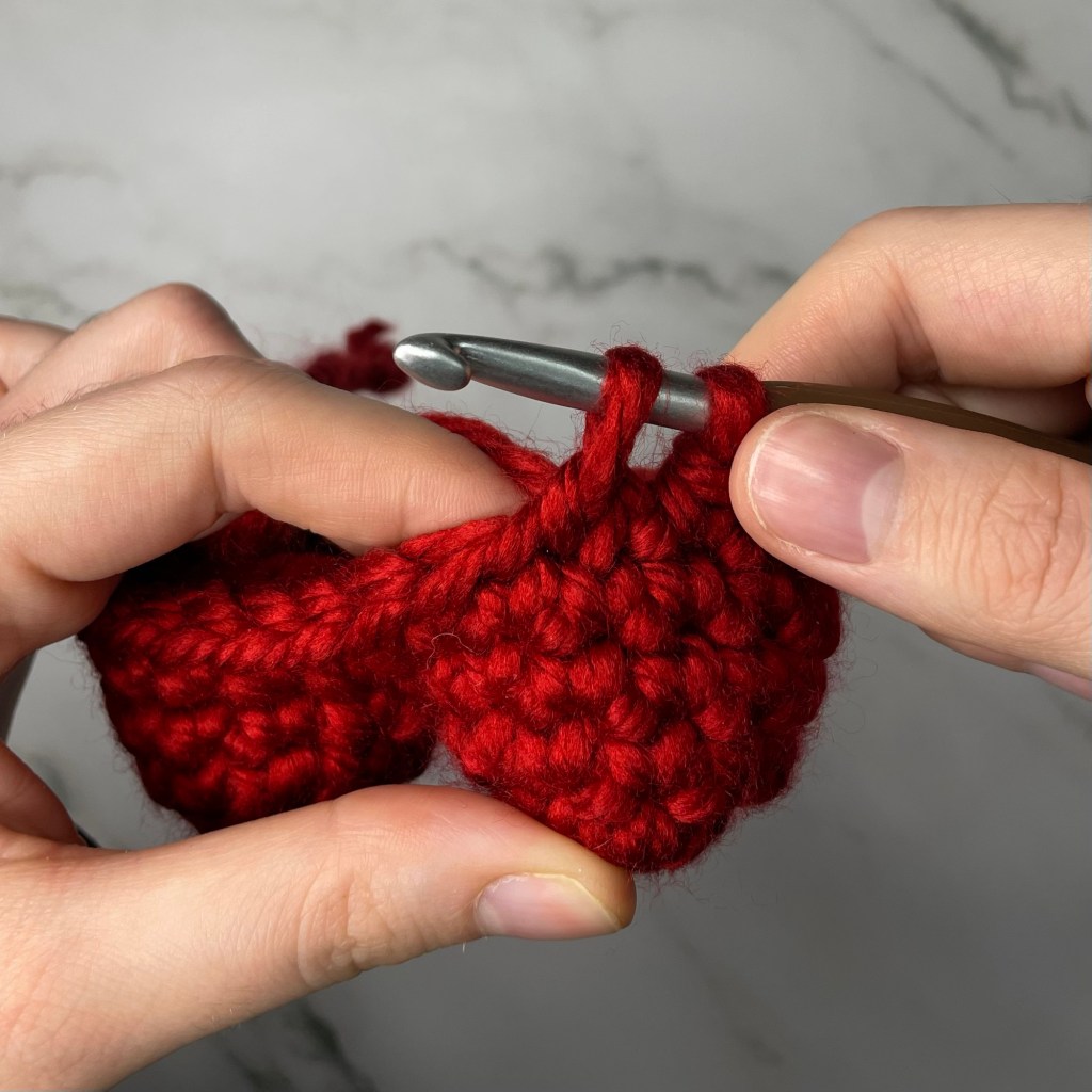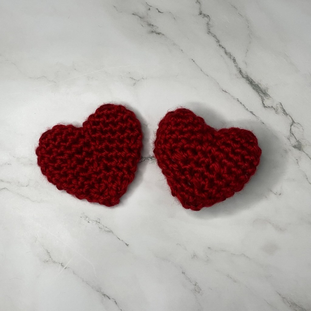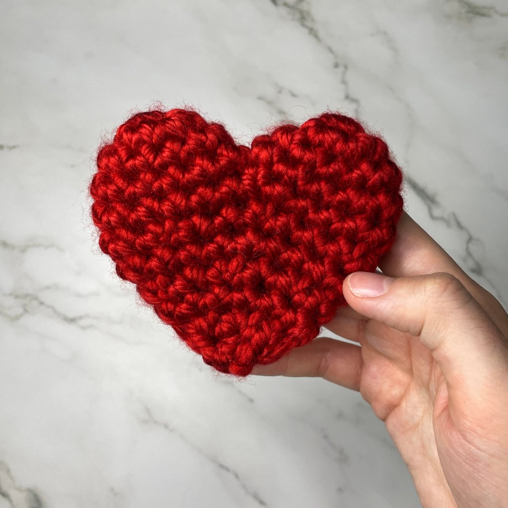 Fasten off, sew the bottom of the heart together and weave in ends